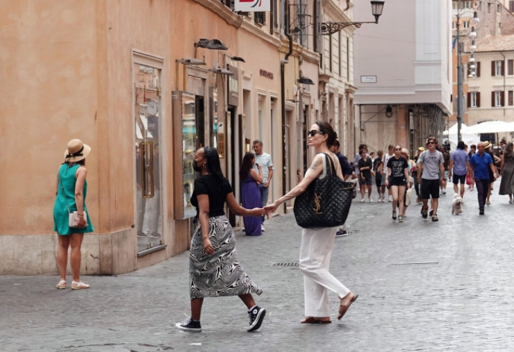 Jolie se află la Roma unde filmează cel mai nou proiect al său. De data aceasta este în spatele camerei de filmat, fiind regizoarea peliculei "Without Blood", în care joacă Salma Hayek. Într-o zi liberă, Angelina și-a luat fiica de 17 ani și a cutreierat cu ea magazinele din orașul etern. Relaxate, îmbrăcate casual, cele două s-au ținut de mână și au discutat tot drumul, s-au consultat în legătură cu ce să cumpere și au plecat cu o sacoșă mare cu haine, semn că excursia și-a atins scopul.