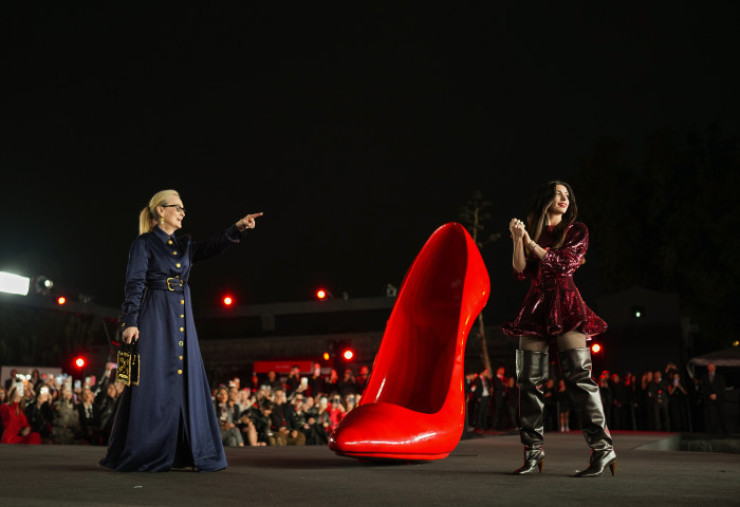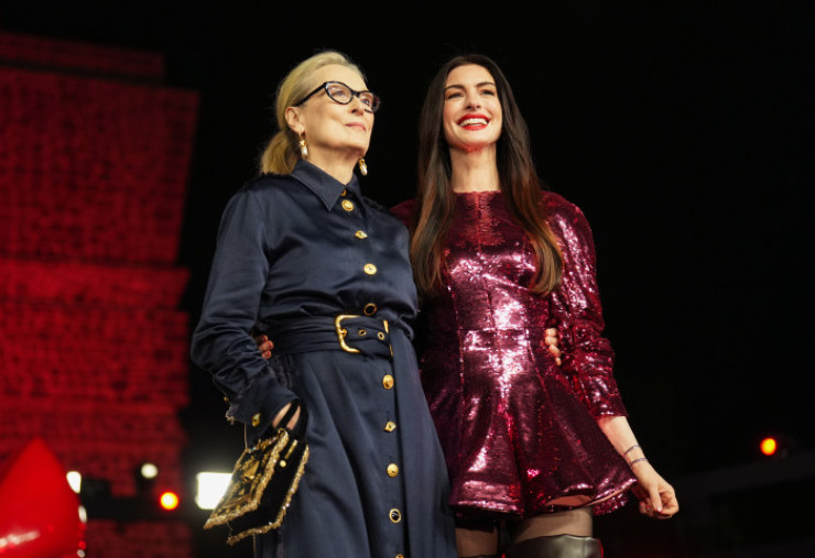 Hathaway (43 de ani) și Streep (76 de ani) au participat la premieră îmbrăcate în ținute extravagante, semnate Schiaparelli și Stella McCartney, în timp ce covorul roșu a fost transformat într-un podium de modă.