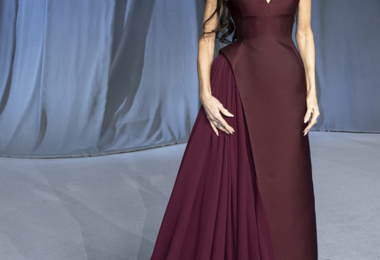 Demi Moore, cunoscută pentru ținutele sale masculine pe covorul roșu, a strălucit de data aceasta într-o impresionantă rochie vișinie la care a asortat bijuterii cu diamante.