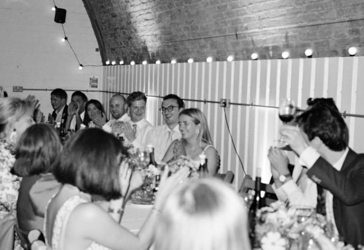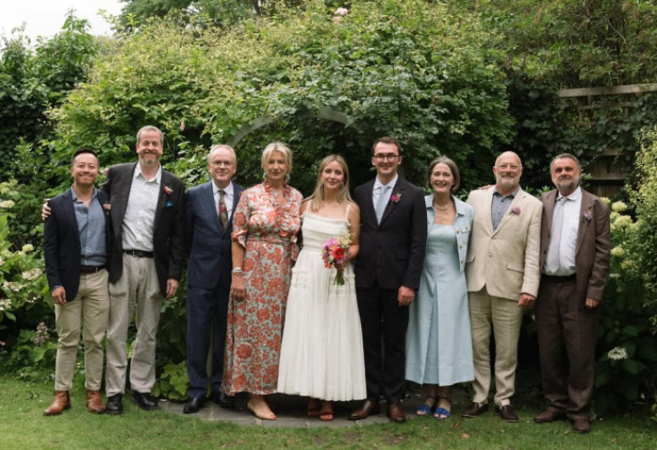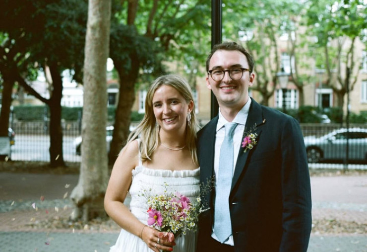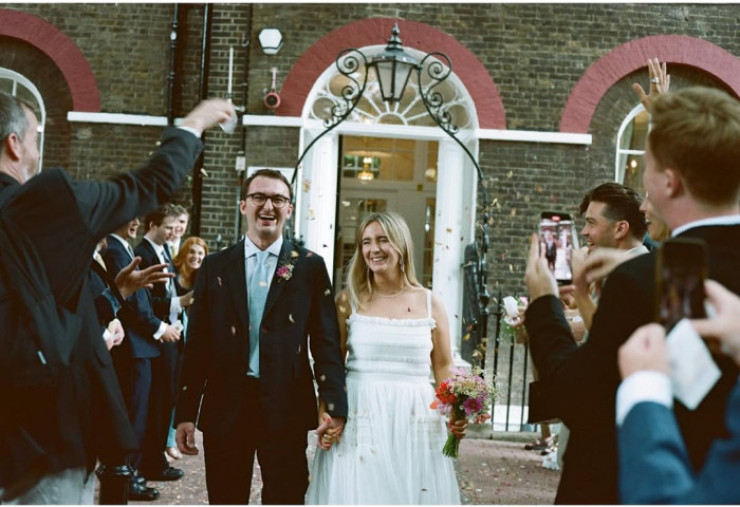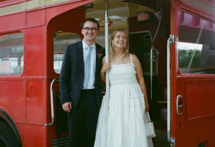 Imaginile surprind momentul în care tinerii miri ies din clădirea unde a avut loc ceremonia civilă, în timp ce familia și prietenii aruncă confetti. După eveniment, invitații s-au urcat într-un autobuz londonez roșu, transformat într-un mijloc de transport de nuntă, pentru a merge la petrecerea restrânsă, unde s-au bucurat de o seară relaxată cu cină și dans.