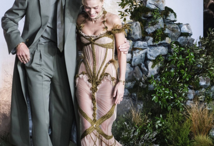 Vedeta a impresionat într-o rochie transparentă, extrem de îndrăzneață, cu un corset inspirat din stilul victorian și detalii verzi realizate din împletituri. Apariția face parte din seria de lookuri cu influențe georgiene adoptate de Margot pentru promovarea rolului Catherine Earnshaw, eroina puternică interpretată de ea în mult așteptata adaptare regizată de Emerald Fennell, inspirată din romanul clasic al lui Emily Bronte, care va avea premiera pe 13 februarie.