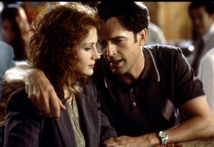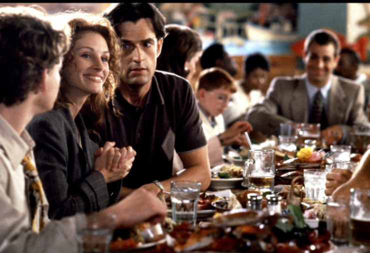 În „My Best Friend's Wedding ”, Julia Roberts apare în rolul unui critic culinar care intră în panică atunci când află că cel mai bun prieten al ei, Michael, interpretat de Dermot, se căsătorește.
