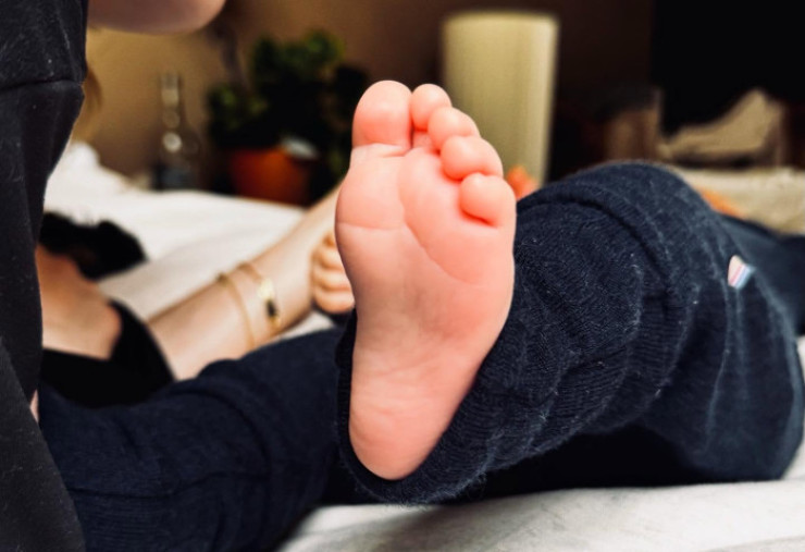 Postarea a fost deschisă cu o fotografie tandră în care Rabil își ține copilul strâns la piept, înfășurat într-o păturică. Într-un alt cadru, Vanessa apare întinsă în pat alături de micuțul lor, surprinzând un moment plin de liniște și dragoste.
